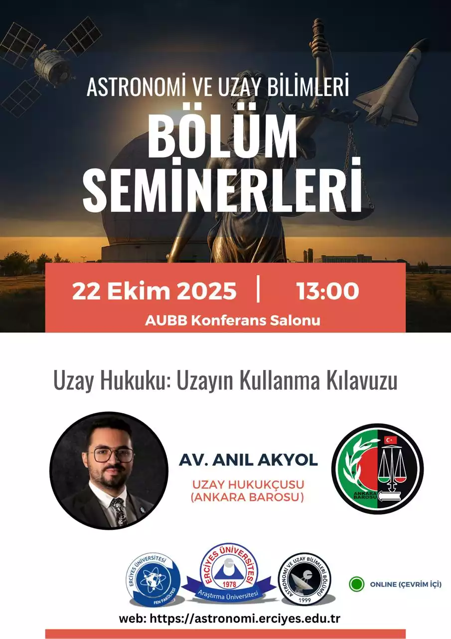 "Uzay Hukuku: Uzayın Kullanma Kılavuzu" başlıklı online(çevrim içi) seminer verecektir.